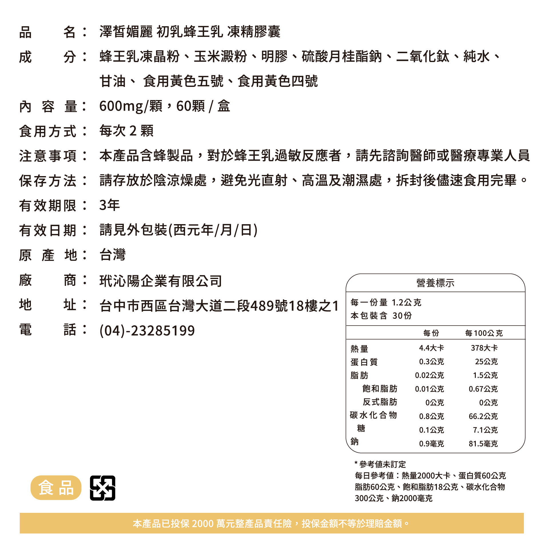 品 名:澤皙媚麗 初乳蜂王乳 凍精膠囊